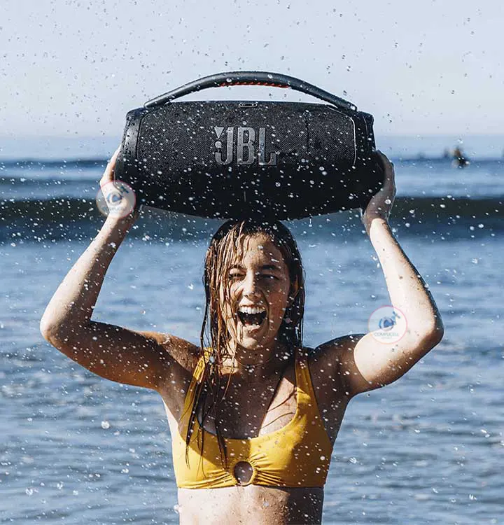 Resistente al polvo y al agua, con Certificación IP 67: Para ir a la piscina. Para ir al parque. El JBL Boombox 3 es resistente al polvo y al agua conforme a la norma IP67 para que puedas llevar tu altavoz a cualquier parte.